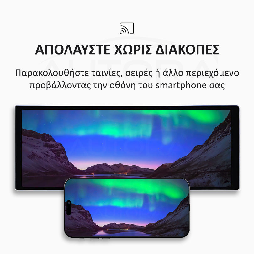 Η λειτουργία κατοπτρισμού οθόνης σας επιτρέπει να προβάλλετε το περιεχόμενο του smartphone σας απευθείας στην οθόνη της συσκευής πολυμέσων. Όποιο περιεχόμενο κι αν επιλέξετε, μπορείτε να απολαμβάνετε την ψυχαγωγία σας ακόμη και όταν περιμένετε στην κίνηση.