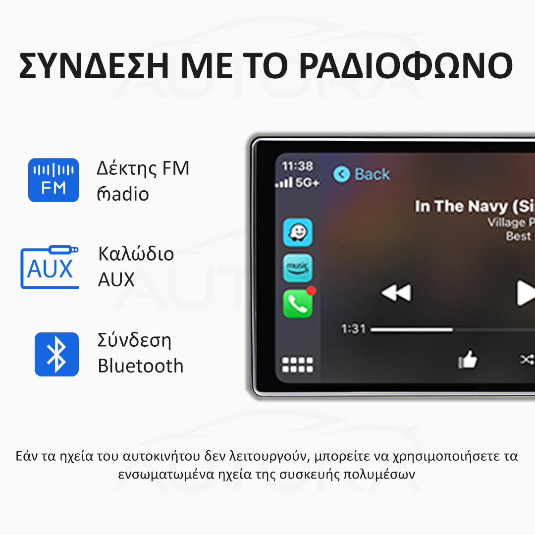 Μπορείτε να συνδέσετε το κινητό σας ασύρματα μέσω Bluetooth ή με καλώδιο, εξασφαλίζοντας σταθερή σύνδεση και ταυτόχρονα φόρτιση της συσκευής σας. Συμβατό με όλα τα smartphones.